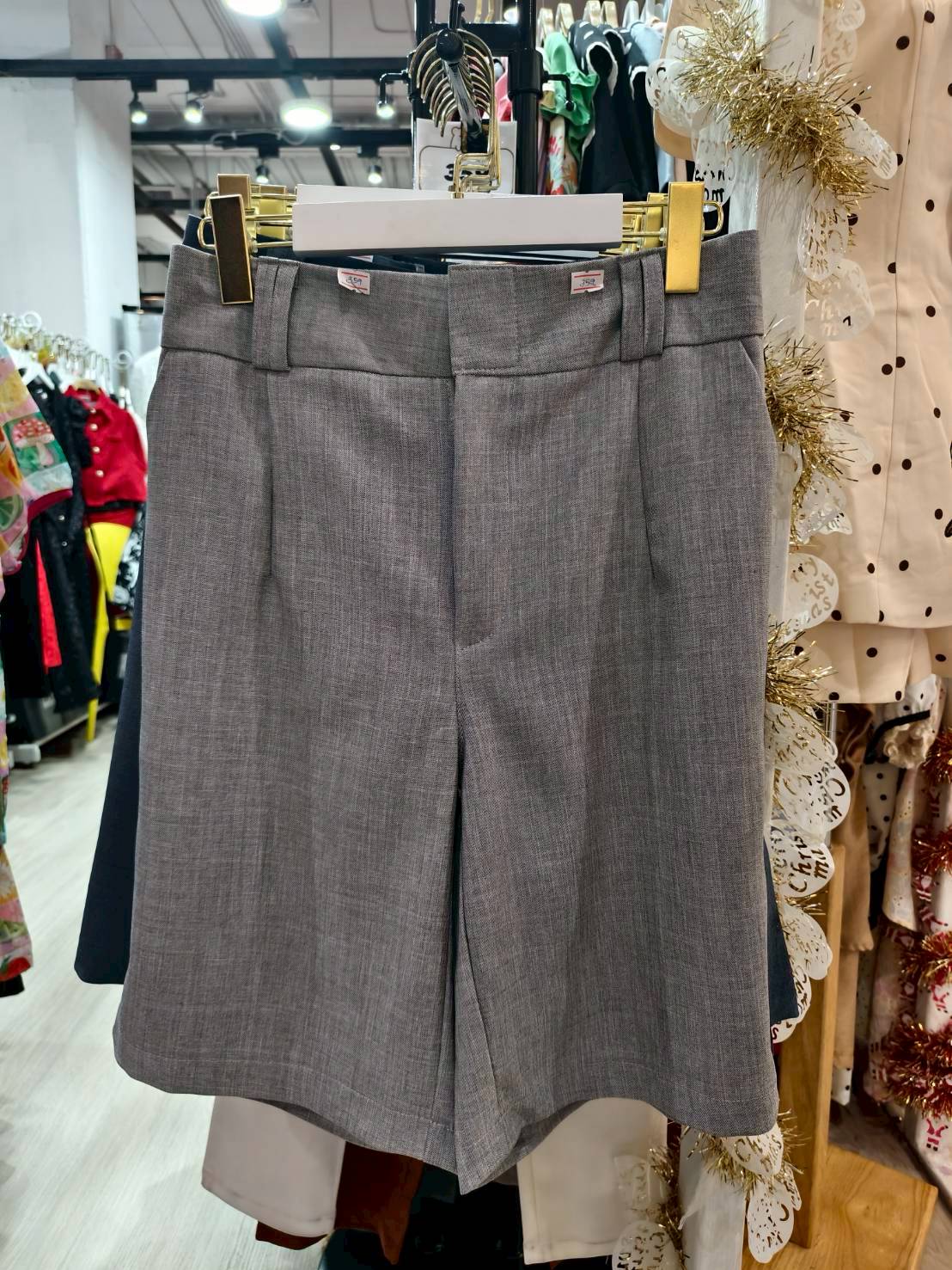 กางเกงขาสั้นผ้าเรียบ สีเทาอ่อน