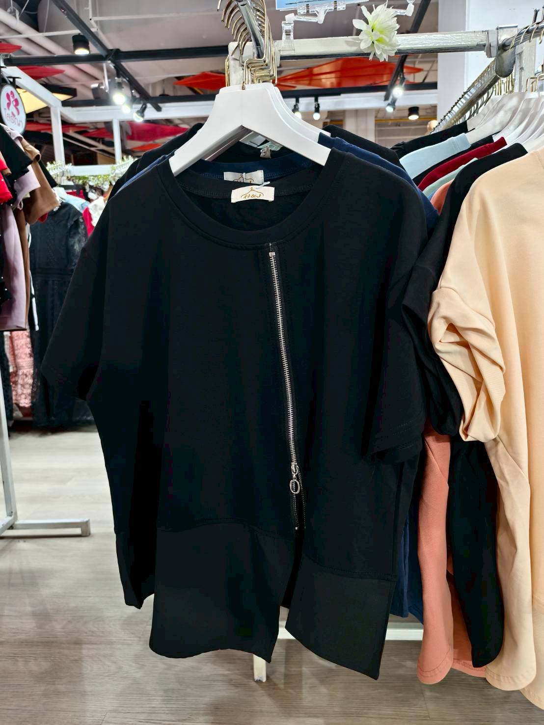 เสื้อแขนสั้นสีดำ ซิปหน้า
