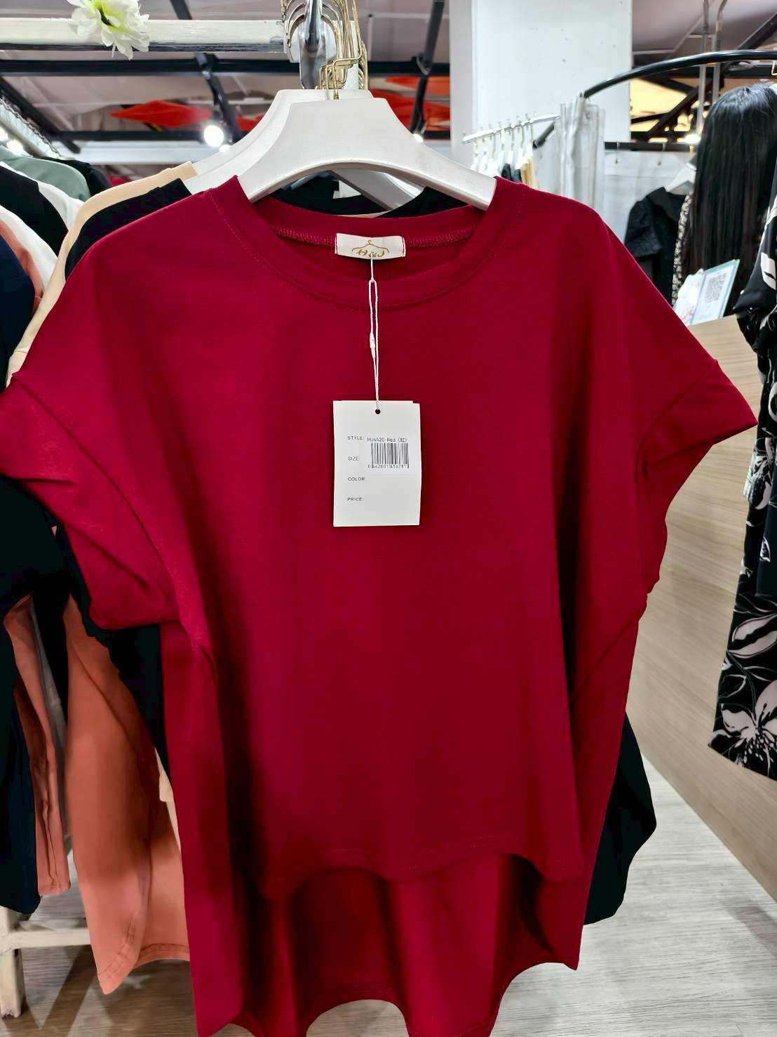 เสื้อแขนสั้นสีแดงเข้ม ทรงเรียบ